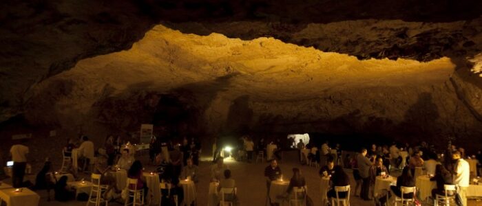 Külön érdekesség, hogy időnként különböző rendezvények helyszíne a barlang, pl. a képen egy Tu be ávi (zsidó valentin nap) ismerkedő estet tartottak speciális díszkivilágítással. (forrás: jercity.com)